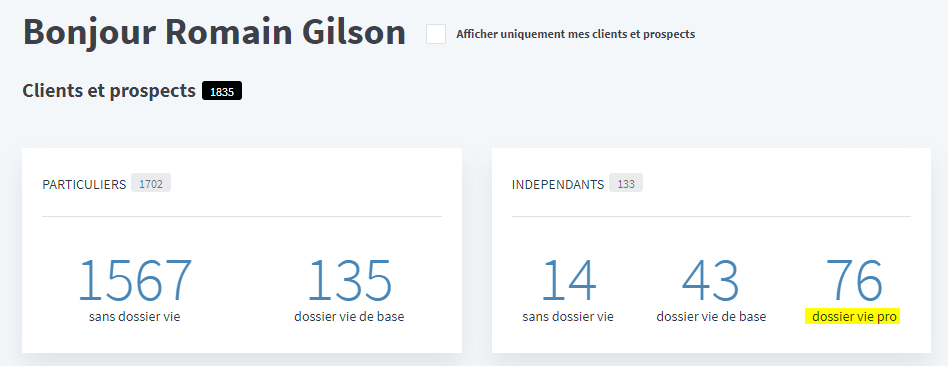 Vous pouvez cliquer sur chaque chiffre du tableau de bord et vous arriverez toujours à une certaine sélection de clients dans votre liste de clients.